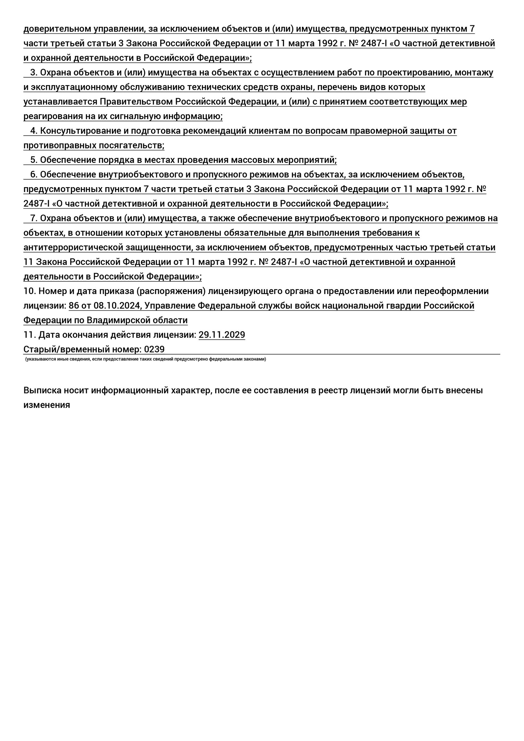 Лицензия на осуществление частной