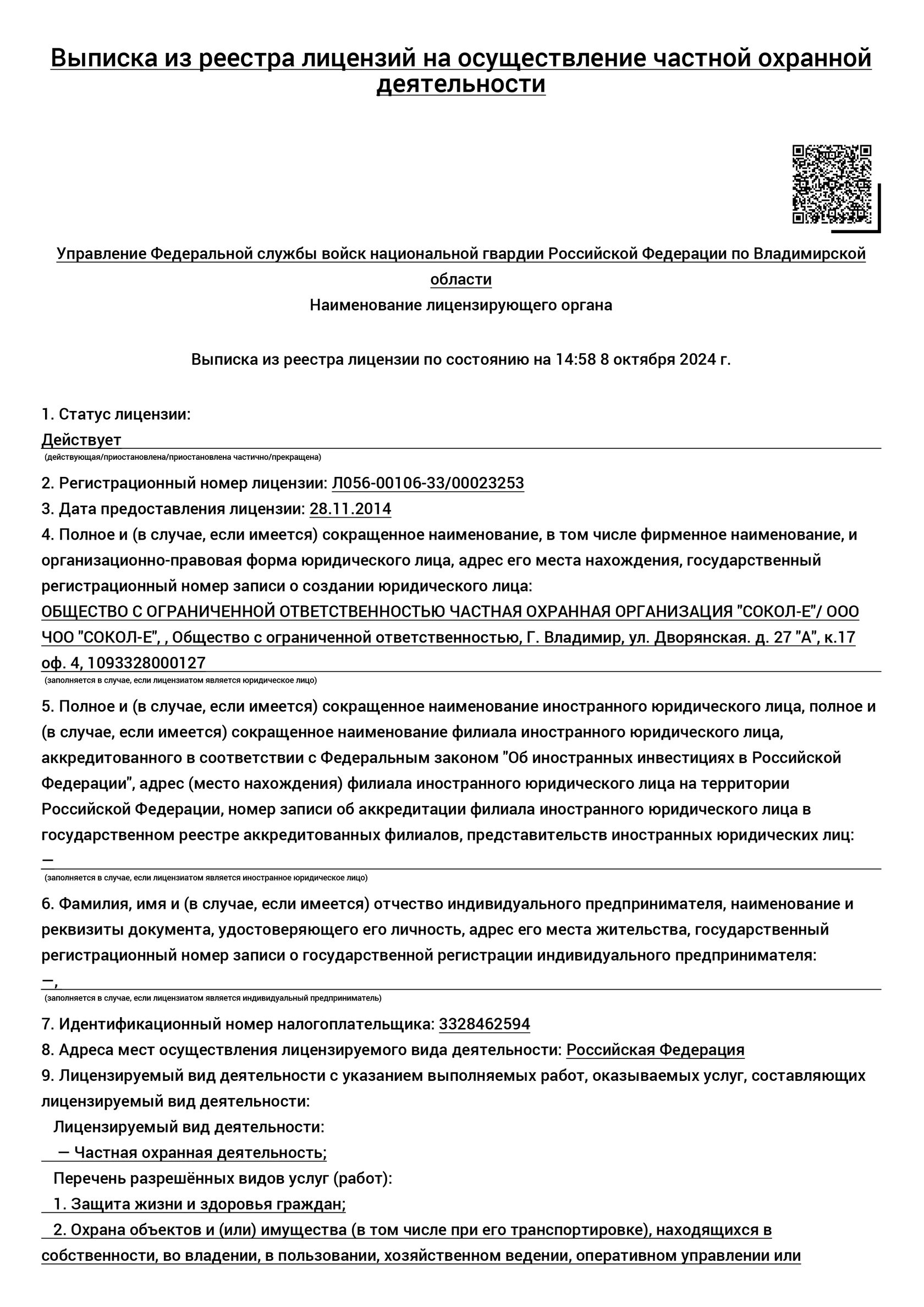 г, выдана Управлением Росгвардии РФ по Владимирской области